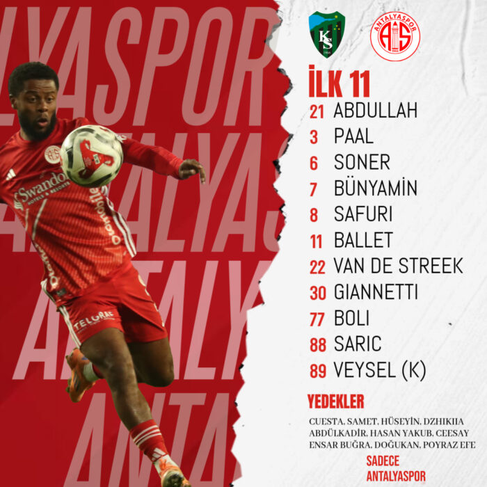 Trendyol Süper Lig’in 17. haftasında oynanacak olan Kocaelispor – Hesap.com Antalyaspor mücadelesi öncesi kadrolar açıklandı.