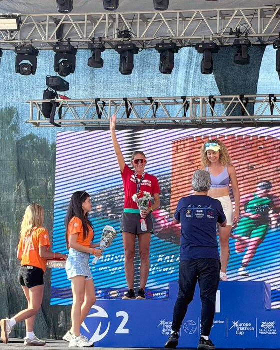 Antalyaspor’un başarılı triatloncularından Tatiana Vukolova, kendi klasmanında ikinci olarak gümüş madalya kazandı.